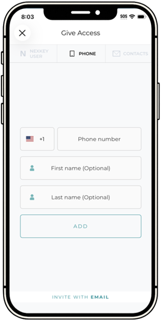 Phone: You can manually type the intended recipient's phone number. Please note: the First/Last Name fields are optional as each Nexkey user must input their own first/last name when they register for a Nexkey account.