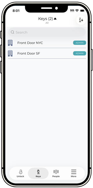 Open the Nexkey app, navigate to the KEYS tab, and select the Nexkey device from your list that you'd like to make changes to.